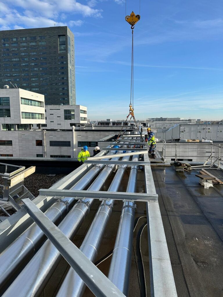Projectcoördinatie voor de bouw van leidingbruggen voor de aanvoer van gekoeld water en centrale verwarming naar diverse bouwdelen vanuit het energygrid.